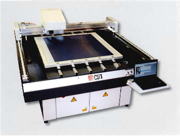 The separation image is jetted directly with a special ink onto a conventionally-prepared flat screen, using a photo-sensitive emulsion. The screen is then exposed and processed conventionally. Adjustment is supported by the CST Engrave Software. The head is cleaned and parked under software control in the integrated cleaning station.